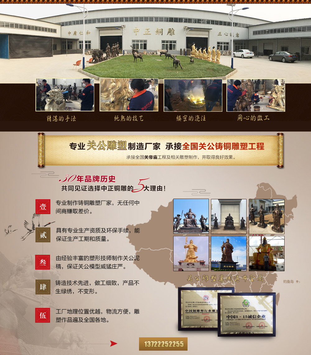 河北中正鑄銅工藝品制造有限公司是一家專業(yè)制作鑄銅動物雕塑的生產(chǎn)廠家。擁有完善、大型、先進的鑄造生產(chǎn)設(shè)備,并由數(shù)位經(jīng)驗豐富的高級鑄造技師指導生產(chǎn)及制作。我們公司主要鑄造動物銅雕、銅獅子、銅麒麟、銅牛、銅馬、銅鹿、銅大象等,可按客戶提供動物銅雕圖片訂做、加工動物銅雕,動物銅雕塑,我們的產(chǎn)品做工精美,造型生動,用銅扎實,質(zhì)量有保證。